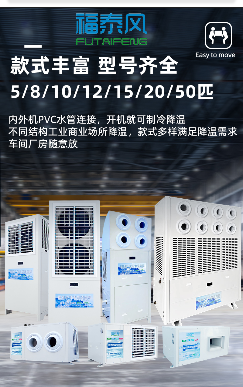 款式多樣有吊掛式,射流款,立式,管道式工業(yè)省電空調(diào)滿(mǎn)足不同車(chē)間降溫需求。