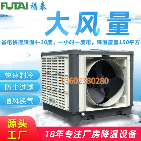 福泰環(huán)保空調(diào)性能穩(wěn)定在越炎熱的天氣下降溫的效果越好。適用于開敞式及半開敞式環(huán)境,能夠直接輸送自然風(fēng)及輸送降溫后的涼風(fēng)。室外新鮮空氣經(jīng)福泰蒸發(fā)式冷氣機過濾、降溫后向室內(nèi)源源不斷的大量輸送,將室內(nèi)帶有異味、粉塵和混濁悶熱的空氣排出室外,同時兼顧換氣降溫及增加空氣含氧量等多種效果。